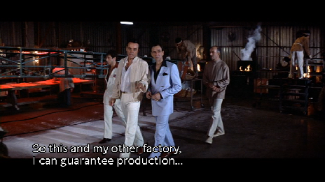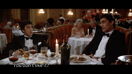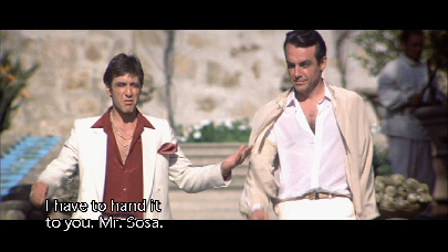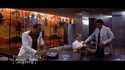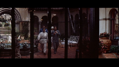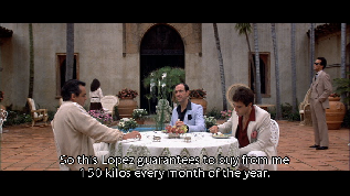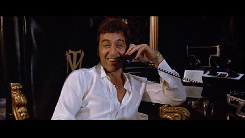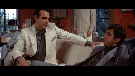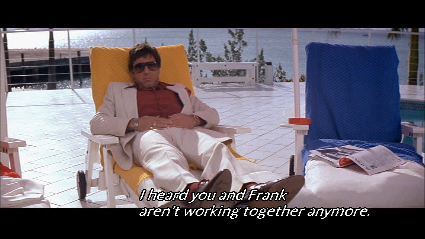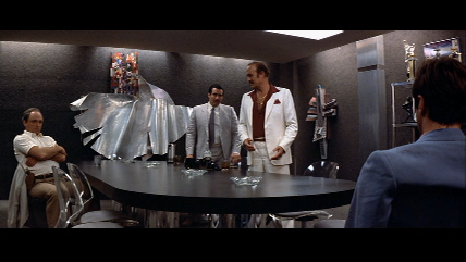 Then we see Tony renegotiating his money laundering deal with the bank at his home office. This was filmed on set at Universal Studios.