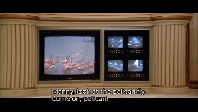 Then we see Tony watch television and take a bath. He clearly does not know the difference between a pelican and a flamingo. Come on pelican.