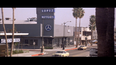 Then we return from Bolivia to Miami but in reality we stay in California. We see Lopez Motors. Thanks to David W. of San Diego CA., this location which was unknown for a long time is no longer a mystery. The exterior was filmed at what is now BMW of Beverly Hills. 8825 Wilshire Blvd.