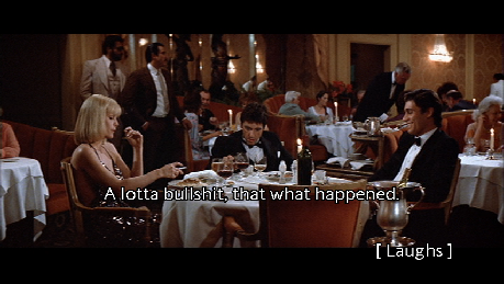 Then we see Tony at dinner with Many and Elvira. This was filmed at the famous Perino’s Restaurant, 4101 Wilshire Blvd. in Los Angeles. This is fitting because not only the who’s who of Hollywood ate here during Hollywood’s heyday but so did gangsters like Benjamin “Bugsy” Siegel, Anthony “Big Tuna” Accardo, and Jack Dragna.