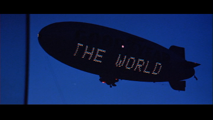 Then we see Tony downstairs in the living room looking out at Biscayne Bay and the Goodyear Blimp.
