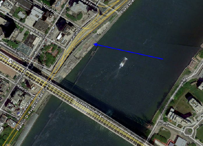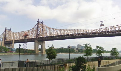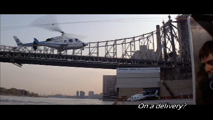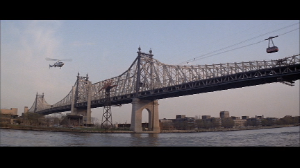 Then we see Tony call down to Miami. This was filmed along the river at East 62nd Street with the Queensboro bridge in the background.