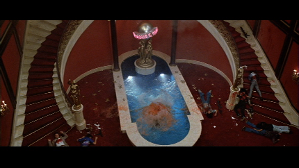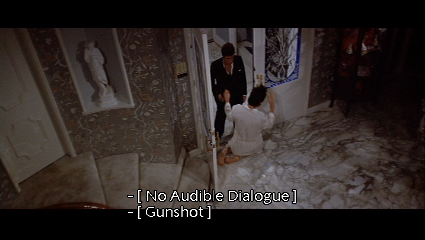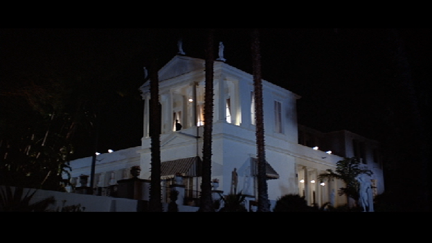 We see Tony arrive back at his house but he is not alone. Sosa’s hit squad is also arriving. The interior scenes were all filmed on set at Universal Studios while the exterior shots were filmed on location at 631 Para Grande Lane.