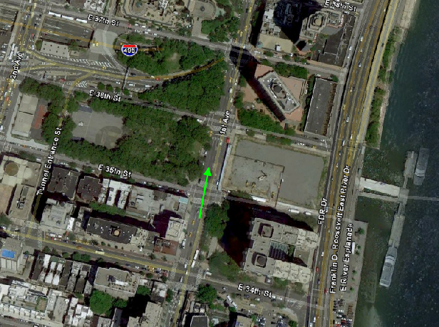 Then northbound on 1st Avenue passing East 35th Street. South of where we just saw them headed north on the same avenue.