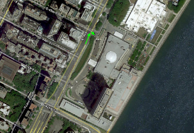 Then we see them continue northbound on 1st Avenue and go up the ramp to the United Nations Plaza.